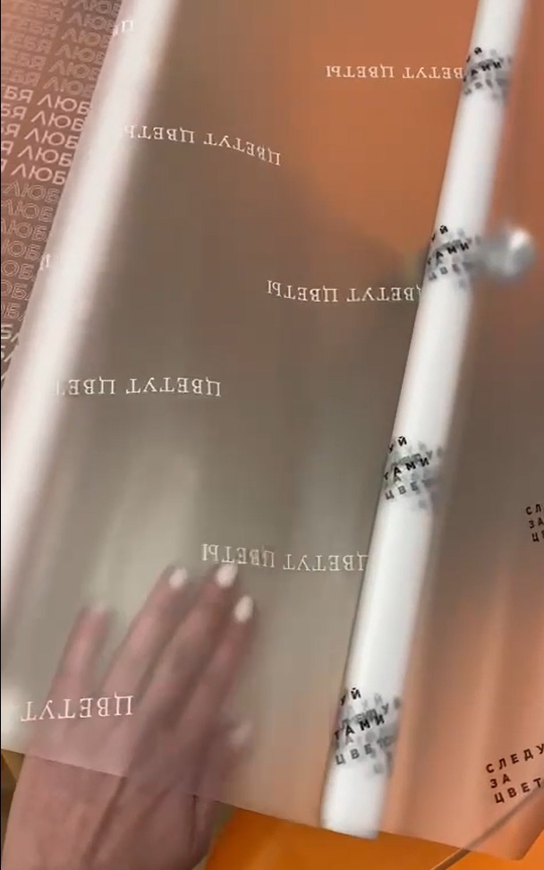 Матовая пленка с логотипом для цветов и подарков